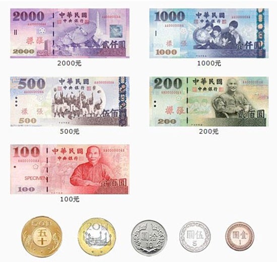 대만 돈은 글로 쓸 때는 위안 yuan 위안이라고 하고, 말할 때는 콰이 kuai라고 합니다.글로 쓸 때랑 말할 때가 다르대요! – 소수점 이하의 0.X는 각자오와 0.0X는 분환을 사용해서 표현이 됩니다.(문장작성시)-대만에서 사용하는 지폐: 1000위안, 200위안, 100위안, 500위안(총5종류)-대만에서 사용하는 동전: 50, 20, 10, 5, 1(0.5코인도 있으나 대부분 반올림/내려서 계산합니다※ 자주 사용되는 대만 달러 지폐 : 100、200、500위안.